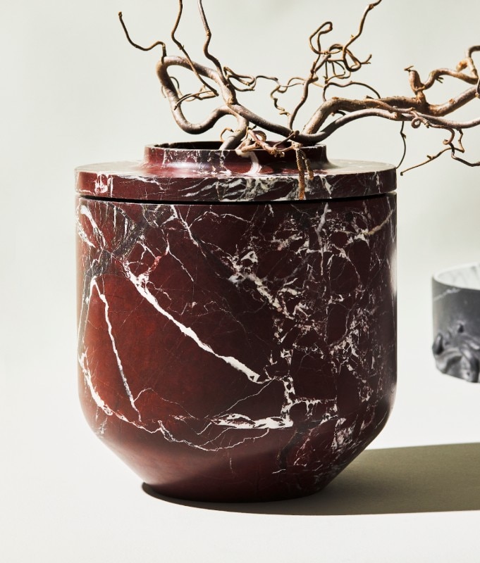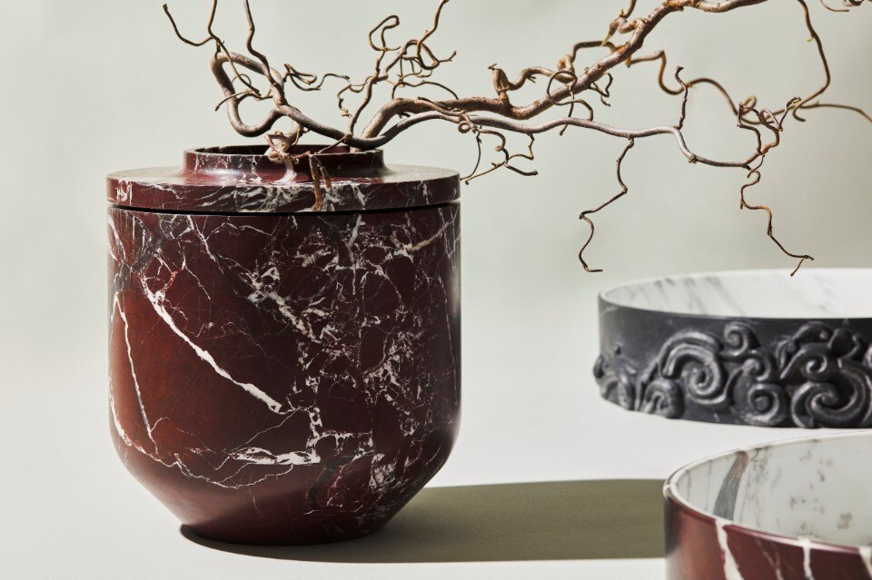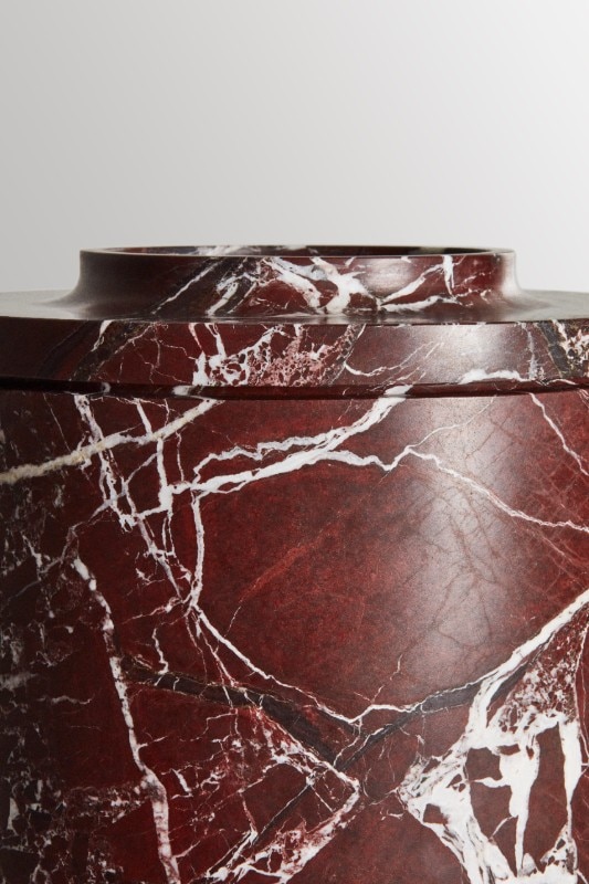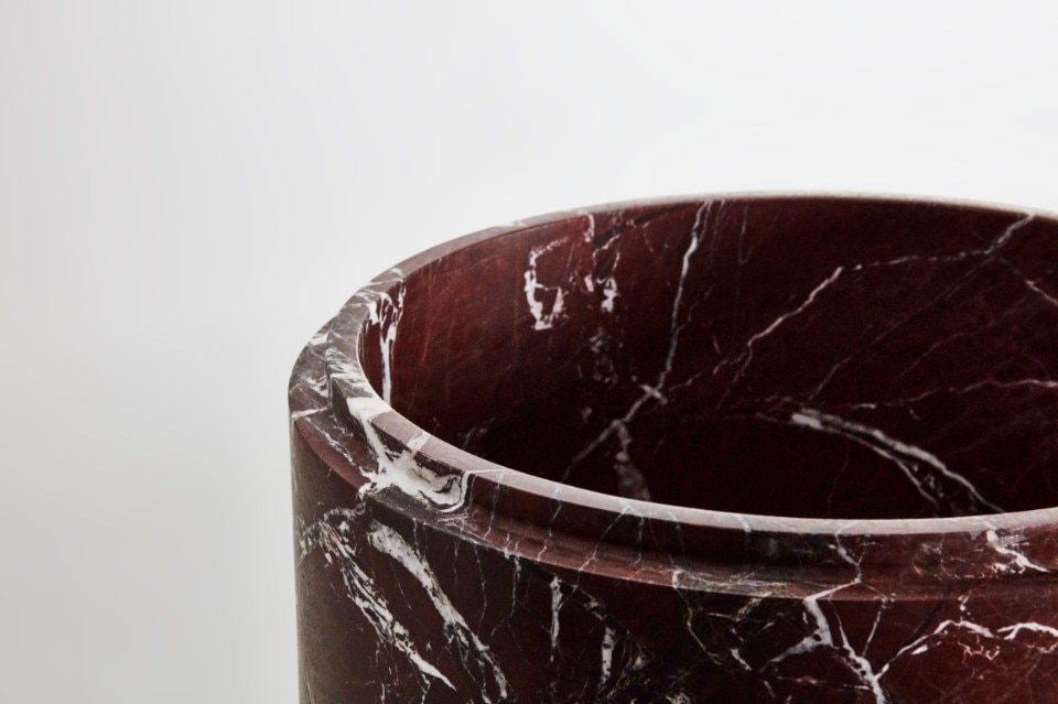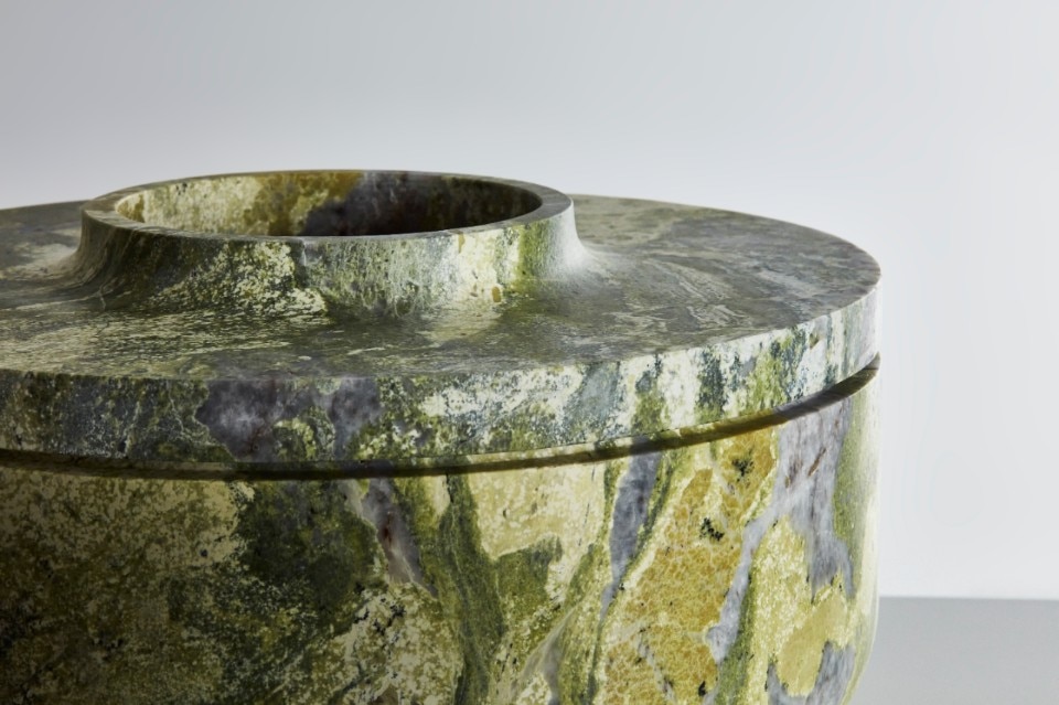 Protagonista della collezione è il materiale nelle sue numerose texture: perfettamente stondati, i pezzi sono ottenuti da un blocco massello di marmo – scavato per rendere leggero il prodotto – ed esaltano le venature e le proprietà della pietra naturale. I vasi, quasi intesi come oggetti d’arte, possono essere utilizzati come elementi decorativi in vari ambienti, dal residenziale all’hotellerie.