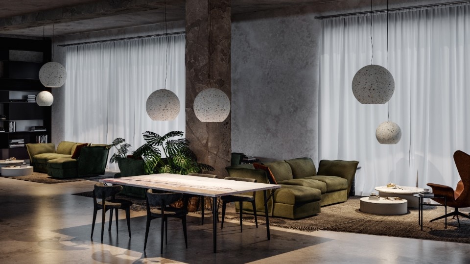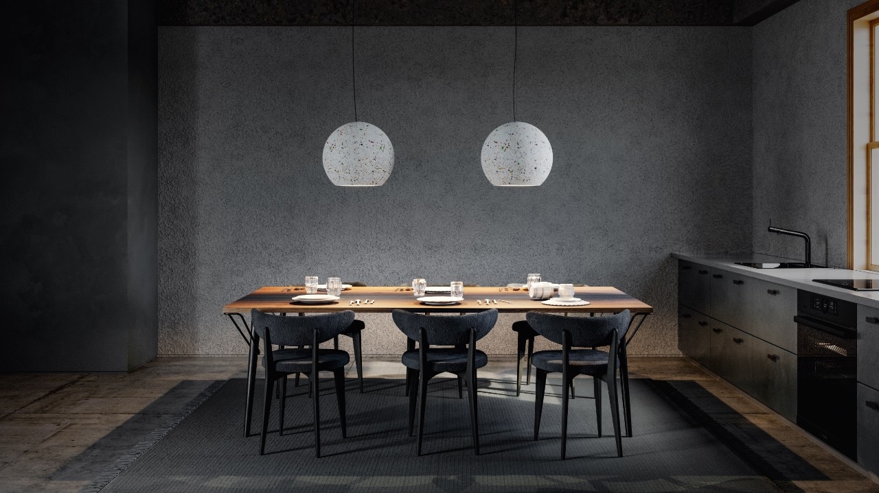 Diesel Living with Lodes presenta infine Reglobe, lampada a sospensione che introduce il tema della circolarità. La collezione si rinnova attraverso forme che sono un rimando all’estetica delle lampade degli anni Sessanta prodotte con il processo di rotatonal moulding. Questa tecnica di stampaggio rotazionale permette la miscela e l’assemblaggio di grani di plastica colorata che danno forma al pattern a effetto terrazzo della nuova lampada: la superficie a fondo bianco enfatizzata da accenti brillanti viene da un composto che integra plastica parzialmente riciclata dagli scarti di produzione.