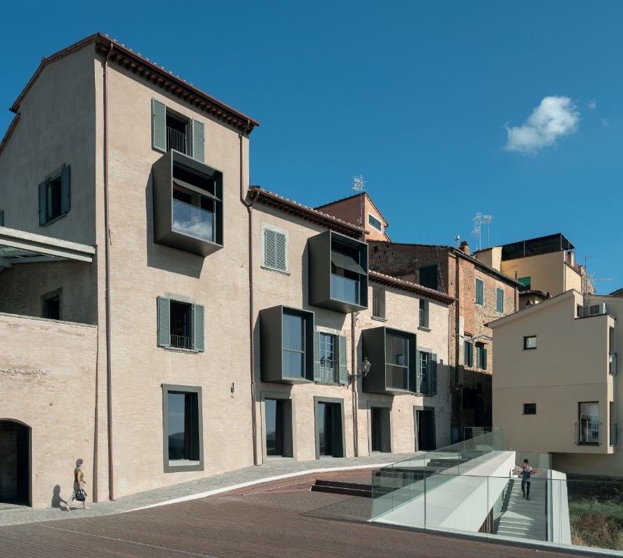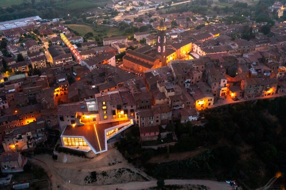 Il Palazzo senza Tempo di Peccioli, borgo medievale toscano, è stato recentemente ristrutturato diventando ambita meta turistica. Il progetto, firmato da Mario Cucinella, ha recuperato le strutture esistenti del Quattrocento – distribuite su un’area di 2.500 mq – proponendo uno spazio espositivo per attività culturali, laboratori e servizi.