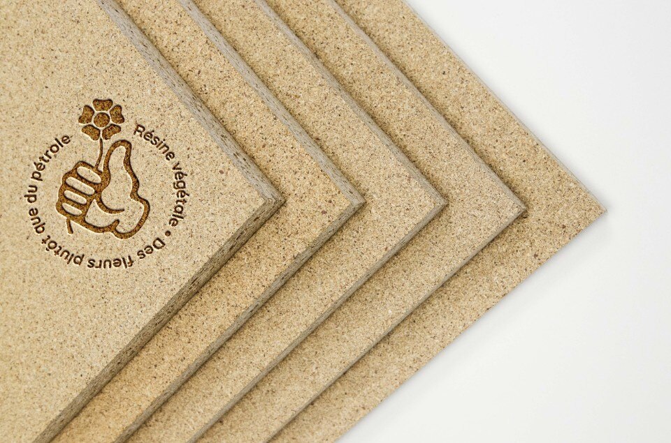Sicura e sostenibile, la colla dei pannelli utilizza materie prime locali e rinnovabili come gli scarti della lavorazione di girasole e colza ed è priva di formaldeide.