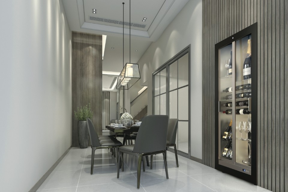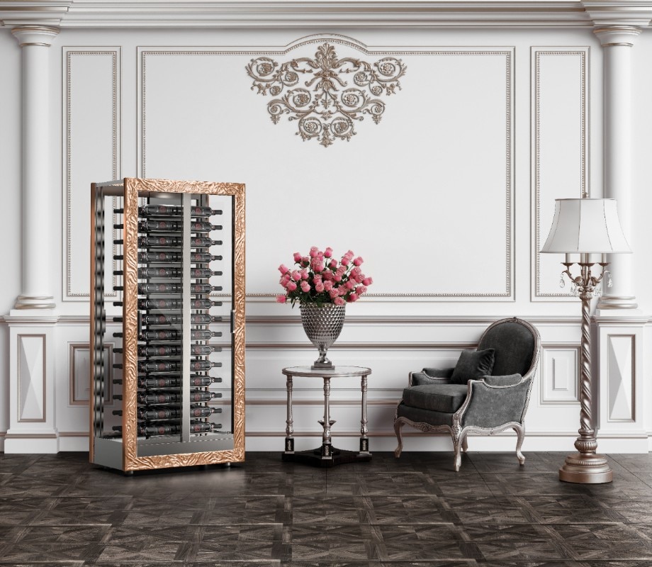 La linea Expo Professional, serie di vetrine climatizzate disegnata da Massimo Della Marta, diventa arredo permettendo un’esposizione dei vini ordinata. Nella serie emergono Teca, vetrina che permette di differenziare le temperature nello stesso ambiente, Quadro Vino, primo quadro refrigerato al mondo, e l’impianto di refrigerazione centrale, innovazione della termodinamica applicata.