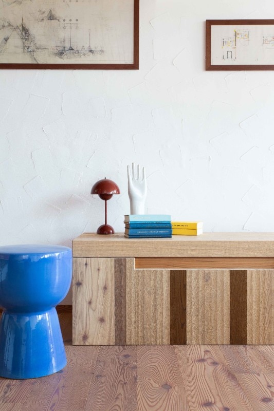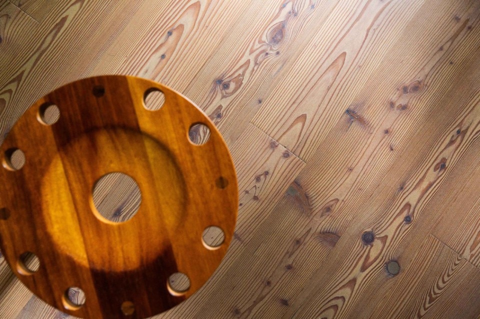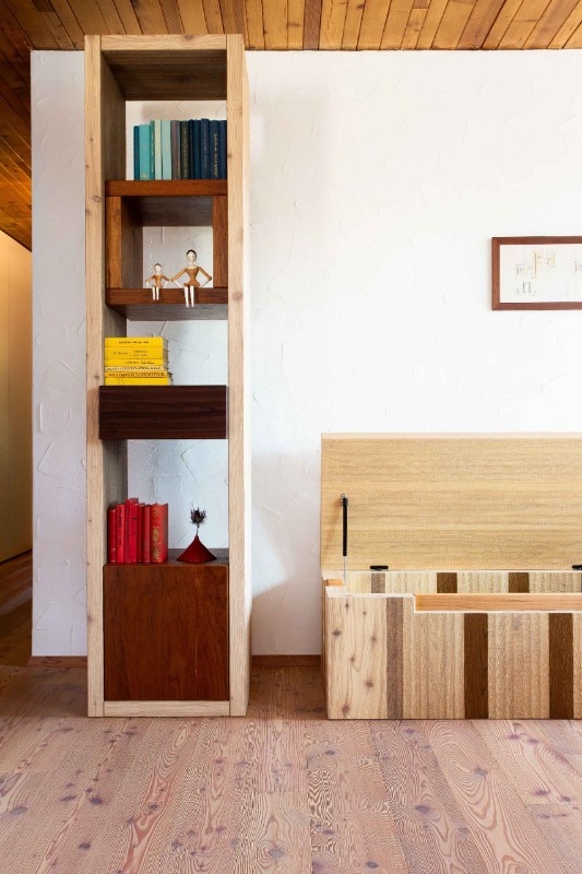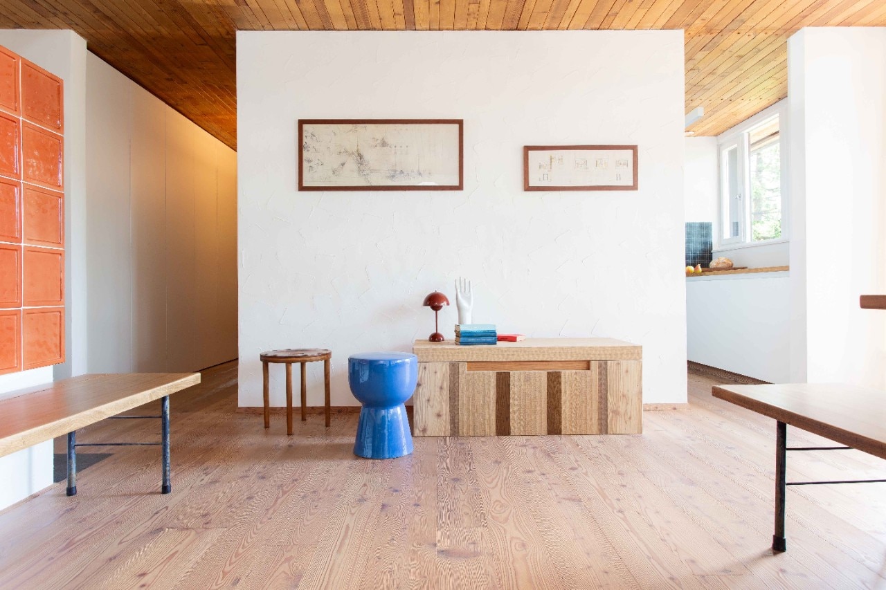 Una delle villette è stata ristutturata utilizzando un legno di larice biocompatibile di Fiemme Tremila per i pavimenti: Montefeudo, della collezione Echi di Fiemme, caratterizzato da nodi marcati e fiammature brunite che esaltano gli interni.