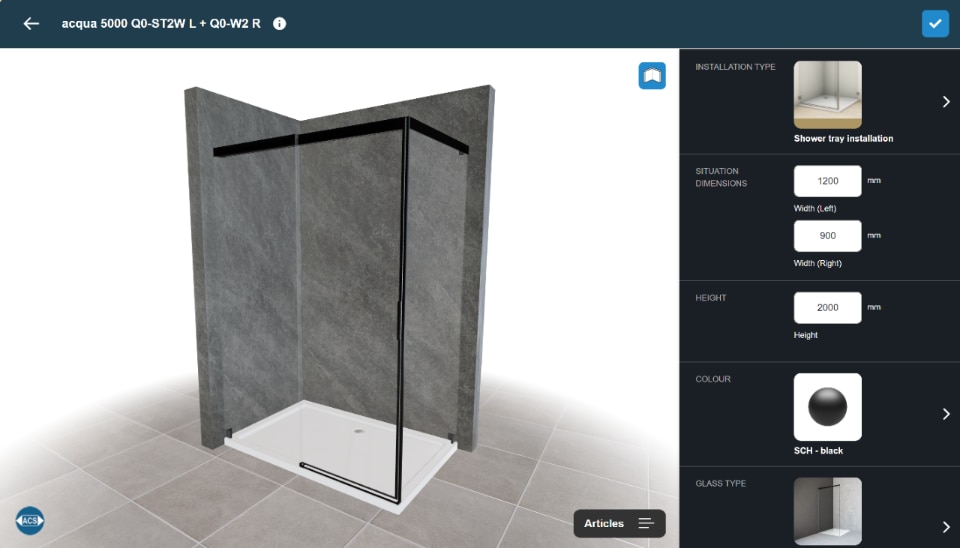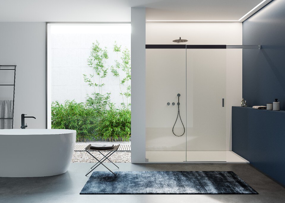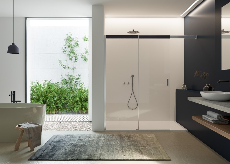 La nuova versione lanciata dal marchio vuole dare una soluzione capace di adattarsi ad ambienti dalla pianta irregolare: il profilo di scorrimento può, infatti, essere adeguato a seconda delle necessità e la barra di supporto della versione angolare può essere eliminata per non creare impedimenti. La cabina doccia è dotata del sistema ACS, automatic close & stop, attraverso cui la porta scorre gradualmente.