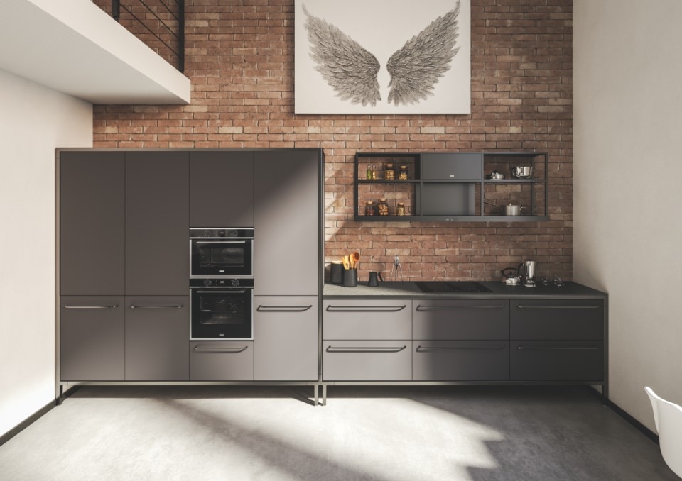 La cappa si caratterizza per i ripiani in vetro grigio fumé e la struttura in metallo Black Matt, mentre la barra LED a filo regolabile fornisce l’illuminazione per il piano di lavoro e una luce soffusa per un’atmosfera accogliente. Dotata di classe energetica A, può essere installata in modalità aspirante e filtrante, garantendo prestazioni eccezionali fino a 720 m³/h.