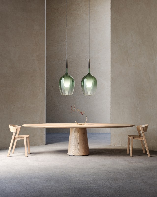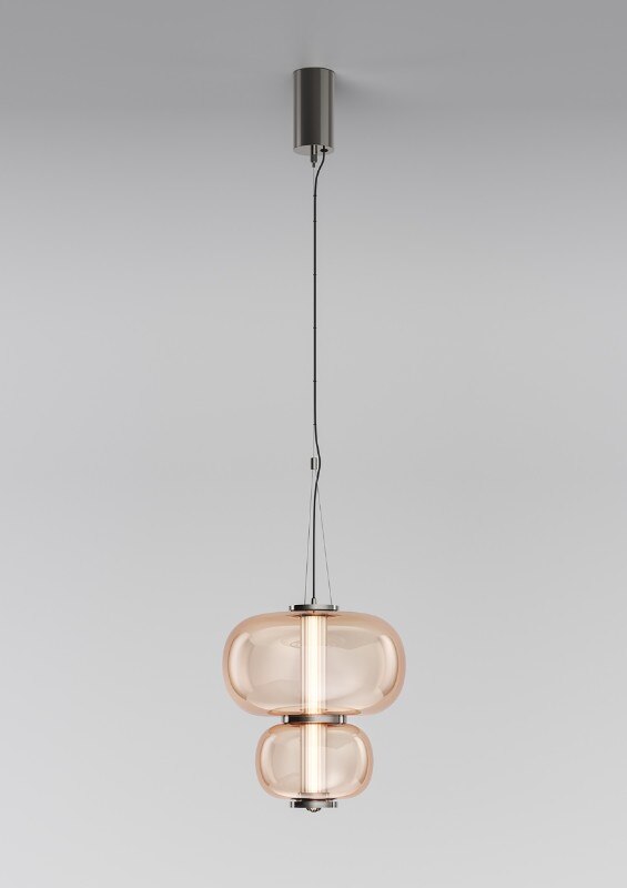 Ampliati anche Regolo di Stefano Traverso, formato da una sfera e un corpo luminoso lineare, e Rosè di Danilo De Rossi, che rimanda alla forma del calice di vino, adesso disponibile in una nuova sospensione dalle geometrie fluide.