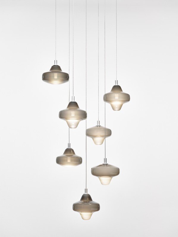 La collezione lanciata da Brokis, costituita da pendenti luminosi trasparenti dalle linee arrotondate, rimanda alle stelle per dare luogo a una forma astratta.