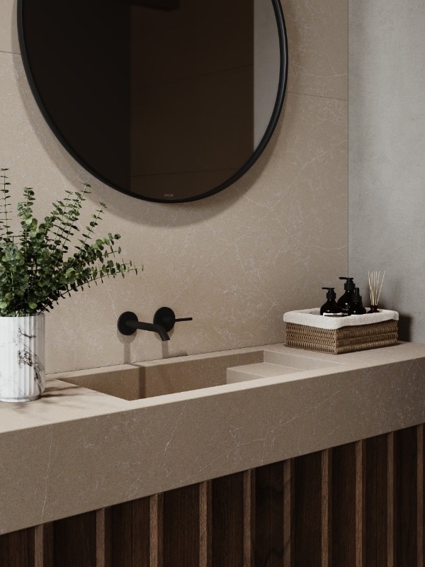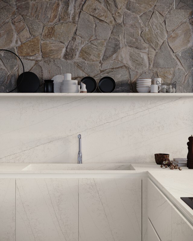 Lanciata di recente, la nuova gamma Ecotone vuole aggiungere valore alla pietra ingegnerizzata per quanto riguarda la sostenbilità. Prodotte con elementi riciclati, resina derivata da bio compound e con un contenuto di silice cristallina inferiore al 5%, queste superfici dal basso impatto ambientale mantengono le loro performance tecniche quali la resistenza ai graffi, alle macchie e alle sostanze acide, e per la loro produzione viene inoltre sfruttato il 60% di energia di origine eolica.