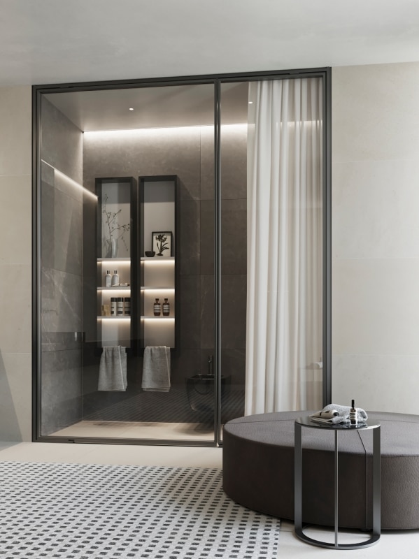 I sistemi parete Vismaravetro puntano a valorizzare i vetro e metallo attraverso soluzioni altamente affidabili e a tenuta d’acqua, in un processo produttivo che supporta la progettazione dell’ambiente bagno andando oltre il canonico.