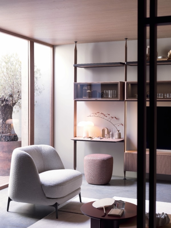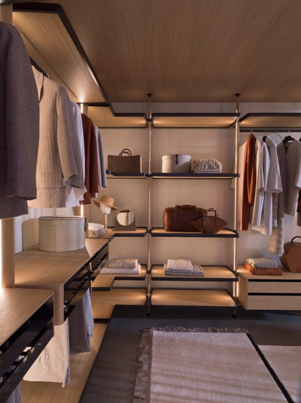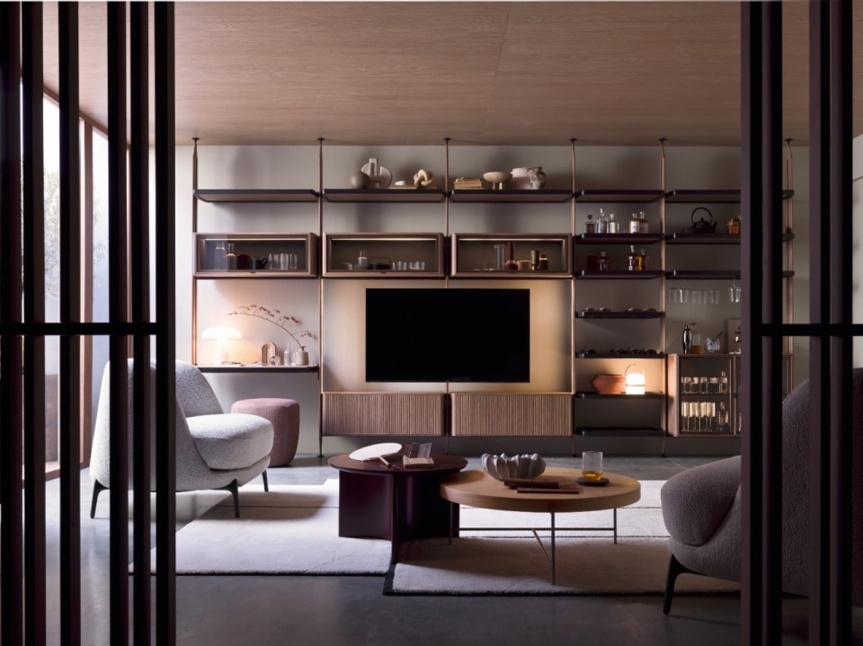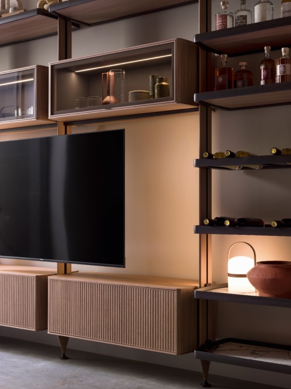 La combinazione dei diversi elementi e delle finiture infatti offre ad architetti e interior designer innumerevoli soluzioni dal punto di vista funzionale e stilistico. La struttura portante del sistema, a parete
