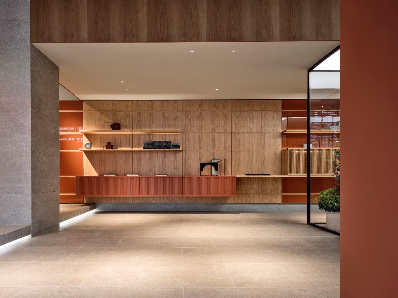 Pompei, dunque, non si limita a contenere, esporre o illuminare, ma si fa espressione di una creatività, di un’estetica precisa e unica. A enfatizzare il tutto, la suggestiva illuminazione raso boiserie, che ne valorizza ogni elemento.