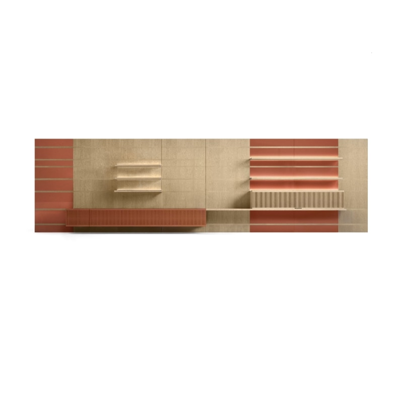 Parete attrezzabile e perfetta interprete del vivere contemporaneo, Pompei è come una grande tela su cui disegnare un quadro personalizzato, utilizzando pannellature, mensole e box. Due le tipologie di pannelli: una superficie piana (con finitura laccata o legno) senza soluzione di continuità o una superficie composita costituita da campiture a linee orizzontali.
