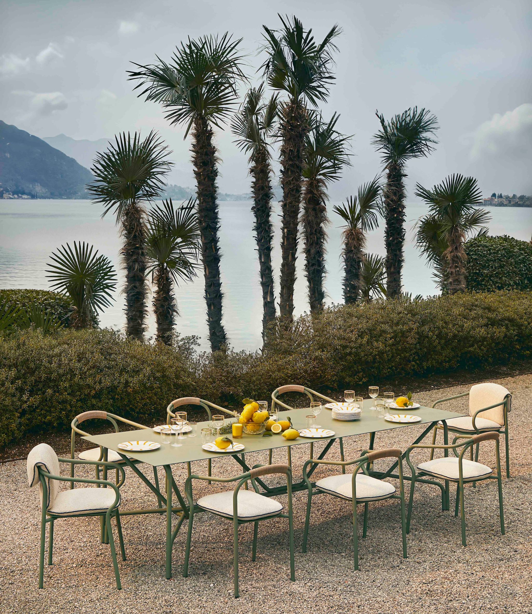 Salò è la collezione outdoor firmata Unopiù che traduce in forma e materia l’atmosfera dei paesaggi lacustri del nord Italia. Progettata da Matteo Thun e Benedetto Fasciana, nasce come un passe-partout stilistico in cui la purezza delle geometrie e la cura dei dettagli si combinano con un approccio funzionale e contemporaneo. Il nome richiama il Lago di Garda e le sue tonalità, evocando freschezza, equilibrio e una sobria eleganza mediterranea.