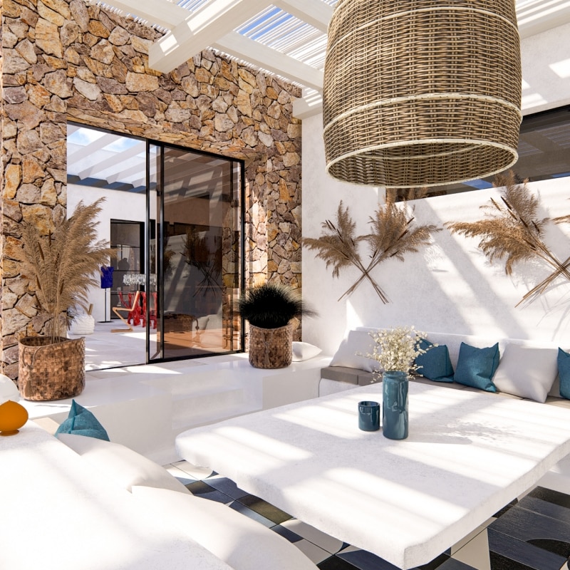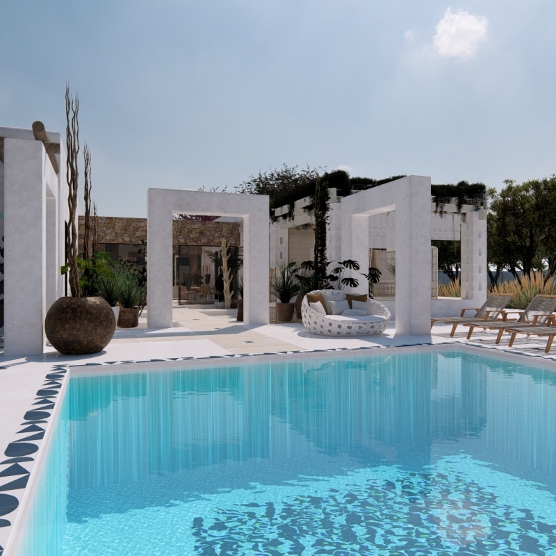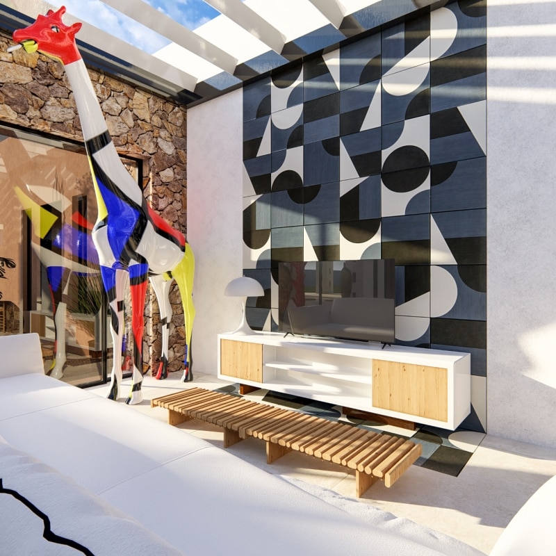 Il linguaggio che ne emerge è ciò che Milizia & Partners definisce Pop Mediterraneo: un atteggiamento progettuale che intreccia tradizione costruttiva, design, arte e cultura internazionale — un lusso inteso come libertà espressiva e qualità dello spazio, non come accumulo di segni. Accanto all'architettura, il progetto sviluppa le Milizia Boxes – Containers of Life, oggetti di design che estendono la ricerca formale dello studio verso la scala dell'arredo.