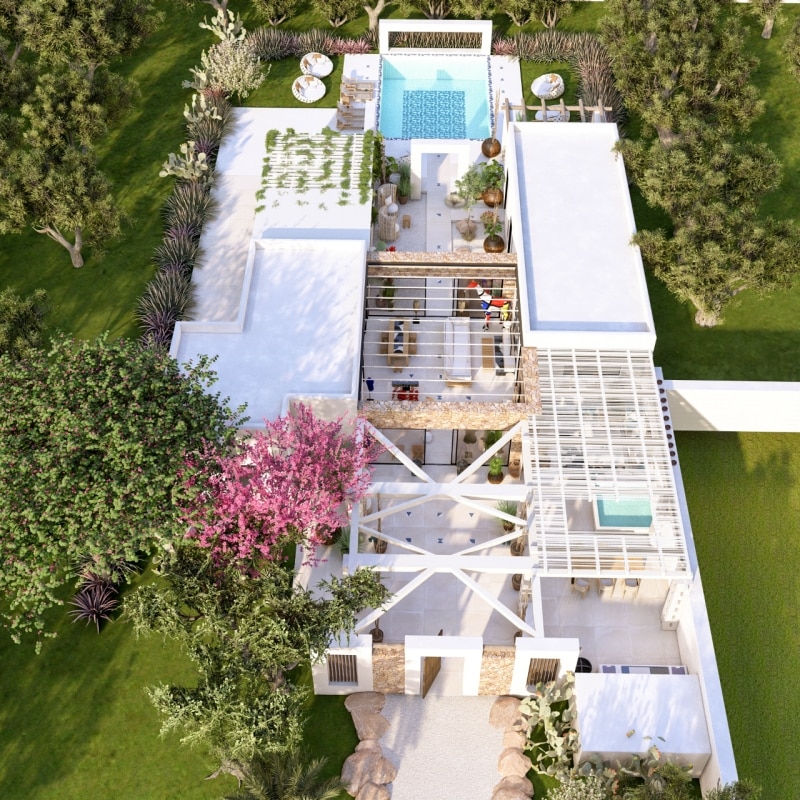 Il progetto si estende progressivamente in un sistema più ampio: il Borgo dei Templari, una costellazione di ville autonome su grandi lotti, organizzate attorno alla cappella storica di Santa Maria del Rosario. Non una lottizzazione, non un resort — piuttosto una forma di insediamento contemporaneo che conserva la grammatica del borgo rurale, riattivandone il senso relazionale e simbolico.