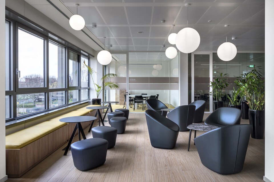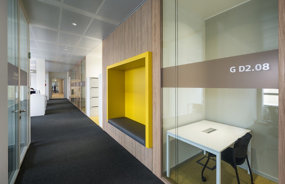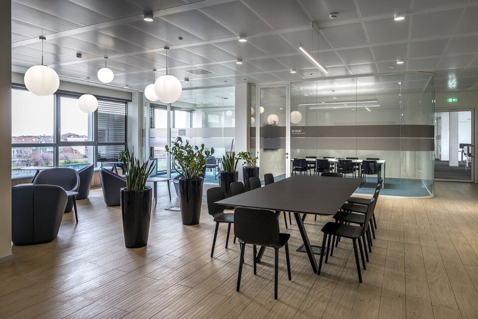 Il progetto degli interni, realizzato dallo studio Lombardini 22 – in collaborazione con DEGW per il workplace e FUD per la segnaletica – utilizza i nuovi smart wall P660, prodotti da Faram, per definire le diverse tipologie di ambienti: spazi per riunioni, brainstorming, svago e incontro ma anche per il lavoro individuale e meeting privati.