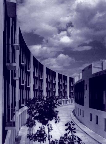 La ricerca di un’architettura semplice, basata su muri bianchi, aperture misurate, rispetto per una secolare tradizione locale del costruire, porterà Coderch a realizzare le maggiori opere di questo periodo, come la serie di case OSH a Sitges del 1944, vera e propria siedlung (vedere la pianta del complesso), interpretata attraverso materiali e tecniche costruttive tradizionali, incorporando i caratteri stilistici dell’architettura mediterranea. ll complesso dell’ OSH a Moncada i Reixac del 1945 reinterpreta, replicandola in due gruppi di quattro edifici ciascuno, la casa tradizionale di campagna della Cataluña, ovvero la Masia. In queste realizzazioni emerge la volontà di dotare l’abitazione di un “medio benestar”: né existenz-mininum né spreco di spazio.