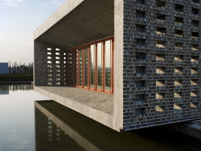 With this house – which geometry is formed from spherical spaces intersecting with tesseract trapezoid – Steven Holl questions current clichés of architectural language and commercial practice.