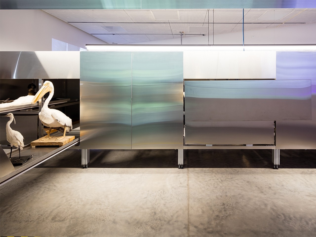 La biblica Terra Promessa, stillante latte e miele, è in realtà una terra con un clima che va da quello mediterraneo a quello semi-desertico. Le popolazioni, umane e animali, che la abitavano agli inizi del novecento, anche se non sempre in pace fra loro, coesistevano con l’ambiente e avevano sviluppato tecniche agricole e pastorali coerenti con il luogo. Quello che ci mostra il padiglione è quanto è successo nel territorio del conflitto israelo-palestinese, la terra – e l’acqua – contesa è diventata il luogo del progetto modernista dell’abbondanza, che ne ha stravolto la fisionomia e ha distrutto – e continua a farlo – intere comunità e le loro conoscenze. Il prospero paesaggio agricolo israeliano è stato costruito a danno di animali e piante autoctoni, alcuni dei quali spariti per sempre.