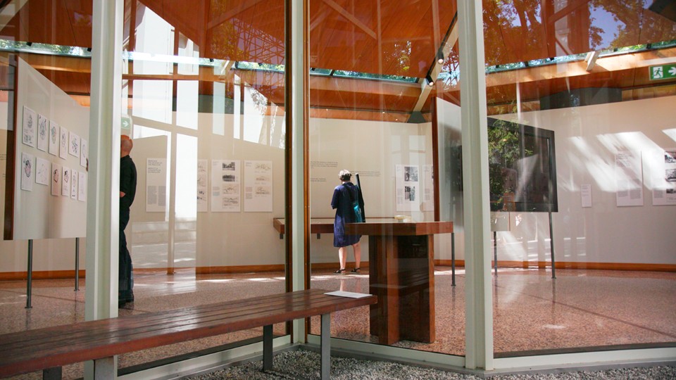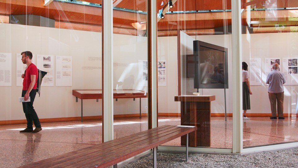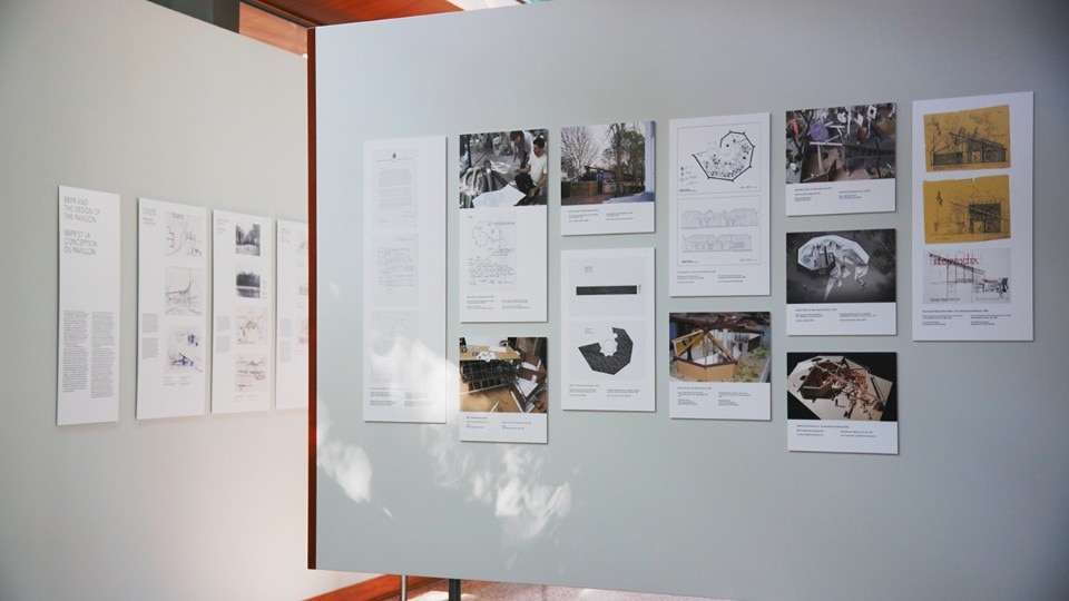 All’interno del padiglione Réjean Legault, associate professor all’Université du Québec a Montréal (UQAM), con il supporto di Cammie McAtee, cura una mostra che ne sintetizza la storia in quattro capitoli: l’incarico conferito ai BBPR dalla National Gallery of Canada, per un edificio espositivo da finanziare con una piccola parte dei capitali confluiti in Italia dal Nord America, nell’ambito degli aiuti post-bellici; il progetto dello studio milanese, avvolto attorno ai due alberi già presenti sul sito, giudicati intoccabili dalla soprintendenza; la vita del padiglione, che in sessant’anni ha ospitato quaranta mostre; infine, il restauro.