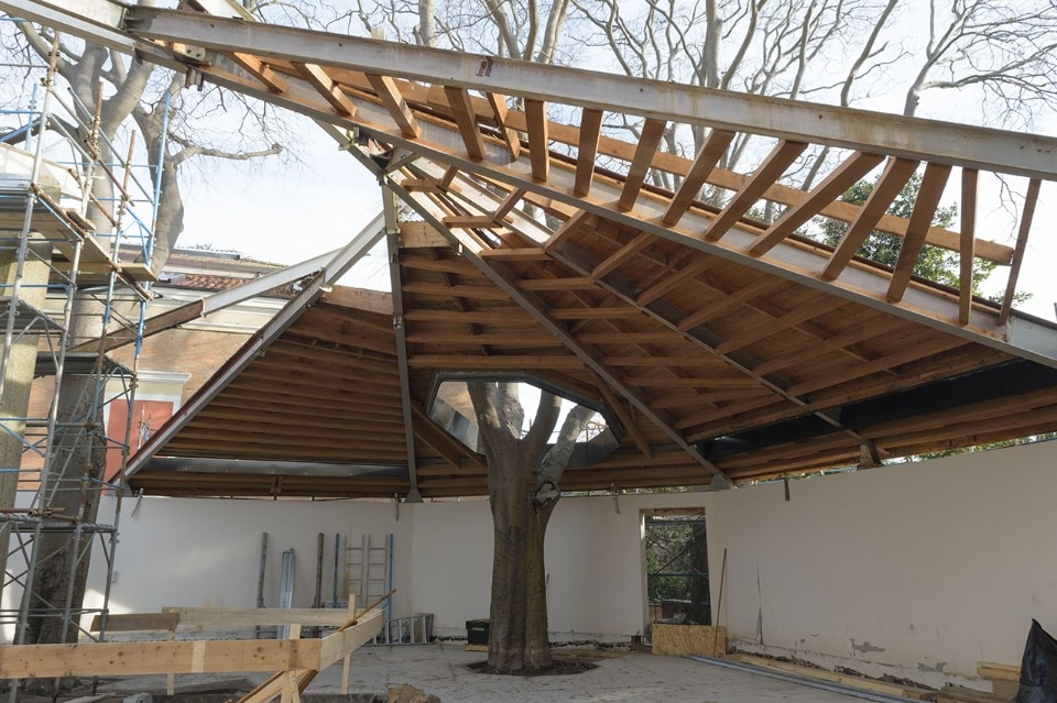 In via del tutto eccezionale (lo ha sottolineato amichevolmente anche il Presidente Paolo Baratta) il Canada si presenta alla Biennale 2018 con due progetti: mentre la partecipazione ufficiale dedicata a Freespace si svolge all’Arsenale (è la mostra “Unceded: Voices of the Land”, curata da Douglas Cardinal), ai Giardini il vero protagonista è lo stesso padiglione.