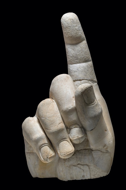 Due monumentale frammenti marmorei quali la mano destra e il piede sinistro della statua colossale di Costantino (IV secolo d.C), esposti in genere nel cortile del Palazzo dei Conservatori di Roma, verranno proposti e accostati a una ricostruzione in scala 1:1 del colosso capitolino mai tentata prima. Un progetto assolutamente nuovo e interessante dal punto di vista artistico, archeologico e anche antropologico, il risultato di una collaborazione tra i Musei Capitolini, Fondazione Prada e Facta Foundation, grazie anche alla supervisione scientifica del Sovrintendente capitolino ai beni culturali Claudio Parisi Presicce.
