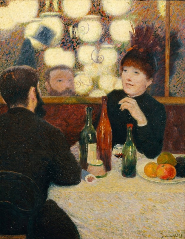 Boldini, con il suo tratto inconfondibile, immortala l’essenza della vita moderna, cogliendo l’energia dei boulevard e l’effervescenza dei salotti. De Nittis, acuto osservatore, ci conduce per le vie della città, tra carrozze e passanti, in un turbine di luci e colori. Zandomeneghi, con la sua tavolozza delicata, ci introduce nei raffinati caffè, dove dame eleganti, avvolte in abiti vaporosi, si abbandonano a conversazioni leggere.