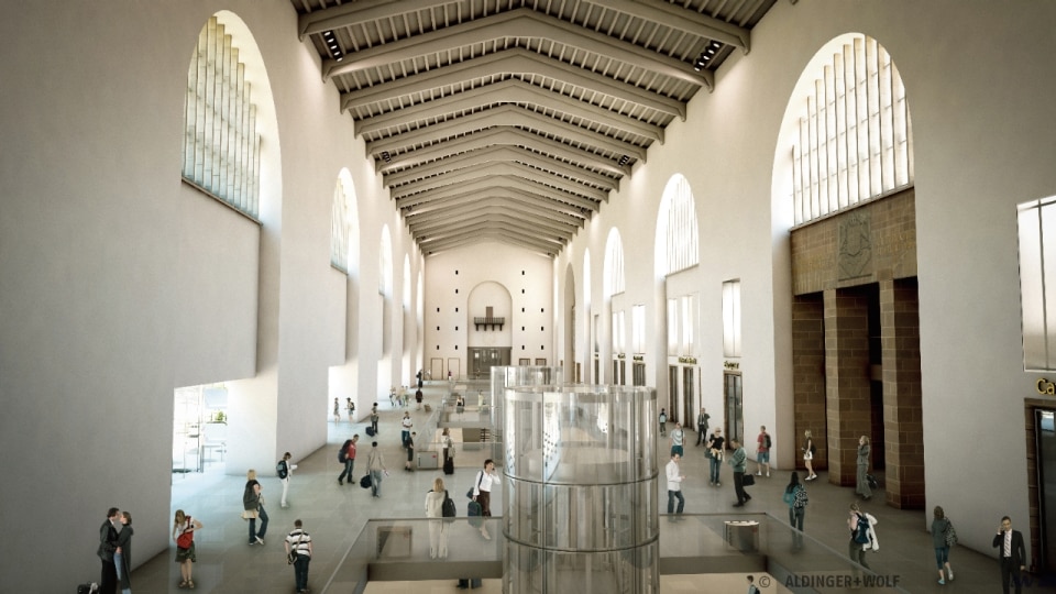 Con i binari spostati sottoterra, il Bonatzbau non è più un terminal operativo, ma diventa una porta metropolitana. Le nuove piattaforme sotterranee, orientate est-ovest, sostituiscono la precedente configurazione a cul-de-sac, aumentando capacità, sicurezza ed efficienza. Questo spostamento libera la superficie per spazi pubblici e parchi, mentre sotto la hall a volta sistemi ad alta velocità, regionali e locali si incontrano in un nodo integrato, collegando Stoccarda oltre la rete metropolitana. Il progetto reinterpreta l’edificio storico del 1928 di Paul Bonatz come parte di un continuum architettonico.
