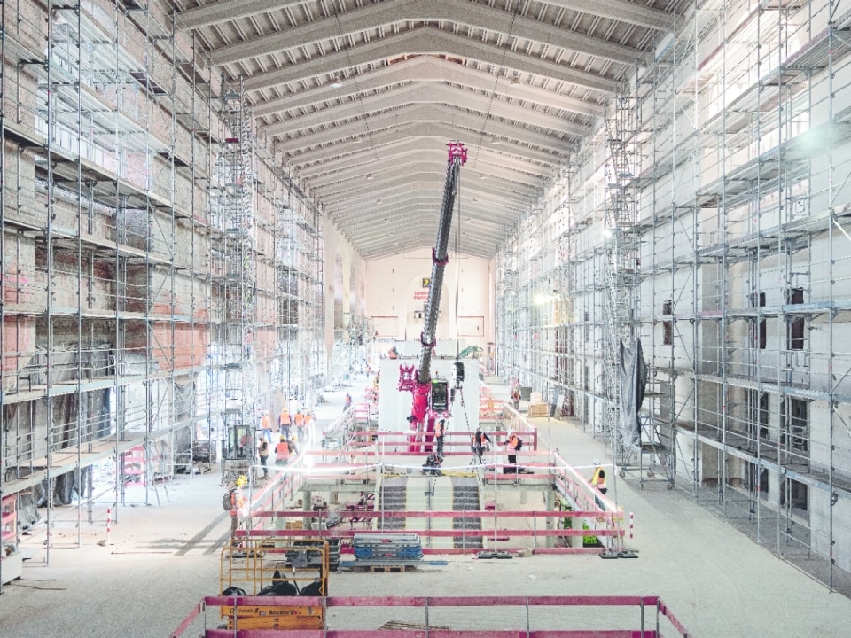 La hall a volta, concepita come un campo continuo, genera un paesaggio inverso di luce, forma e presenza materiale: uno spazio monumentale e armonioso insieme.