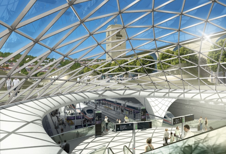 Il tetto della stazione consente al parco dello Schlossgarten di prolungarsi lungo il vecchio tracciato ferroviario, collegando i quartieri di Mitte e Nord lungo il confine del bacino di Stoccarda.