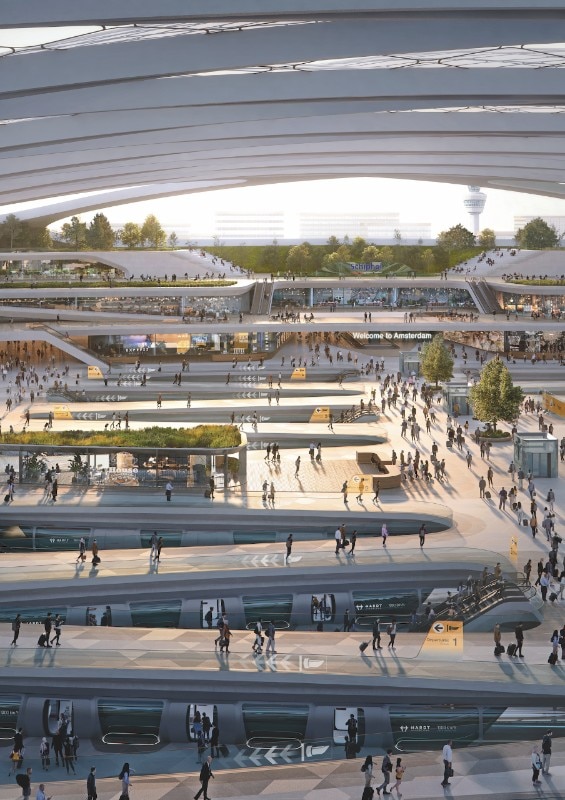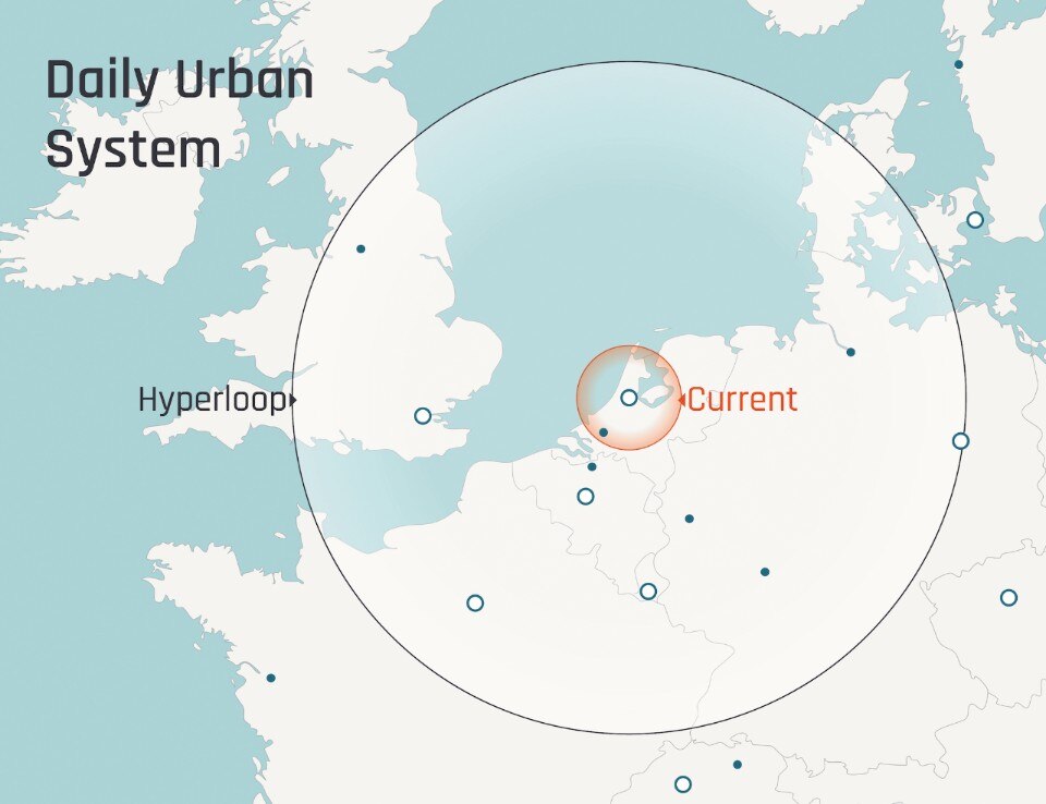 Il futuro è nelle mani di menti innovative che sono capaci di combinare la creatività con le tecnologie digitali. Il team Futures di UNStudio ha avviato una partnership con il consorzio Hardt Hyperloop per esplorare le possibilità di questa tecnologia in Europa. Unendo le forze con Hardt, UNStudio sta contribuendo a delineare il futuro del viaggio grazie allo sviluppo di una strategia di integrazione spaziale e urbana che permette alla tecnologia Hyperloop di promuovere una crescita economica sostenibile e inclusiva in una rete di città europee. Il team UNStudio Futures si focalizza sull’anticipare il futuro attraverso la ricerca e interventi strategici al crocevia tra cambiamenti sociali, tecnologici e ambientali. «Il sistema dell’hyperloop ha il potenziale per affrontare simultaneamente molteplici sfide», rivela Ren Yee, responsabile strategia di innovazione e previsioni, UNStudio & UNSense. «La globalizzazione ha portato con sé l’interdipendenza di diverse nazioni – sul piano economico, politico e sociale – e riteniamo che Hyperloop abbia il potenziale per dare un contributo in tutte quelle sfide». L’Olanda, in particolare, è sempre stata fittamente collegata con il resto del mondo in termini commerciali, e oggi la situazione non è cambiata, dato che la popolazione del Paese continua a crescere (si prevede che raggiunga i 18,4 milioni entro il 2060), sostenuta da migranti di elevato livello di istruzione. Queste popolazioni saranno urbane e, in base alle valutazioni attuali, si concentreranno in tre principali città: Rotterdam, l’Aja e Amsterdam. L’Hyperloop permetterebbe di espandere e collegare le città olandesi oltre il Randstad, da nord a sud e da est a ovest. Sarebbe possibile vivere e lavorare comodamente ovunque si scelga, senza preoccuparsi di confini comunali, provinciali e magari neanche nazionali. L’Hyperloop consentirebbe di avere accesso a un’unica zona in cui vivere e lavorare con oltre 30 milioni di abitanti, collegata da una rete a velocità ultra-elevata affidabile, sicura e sostenibile.
