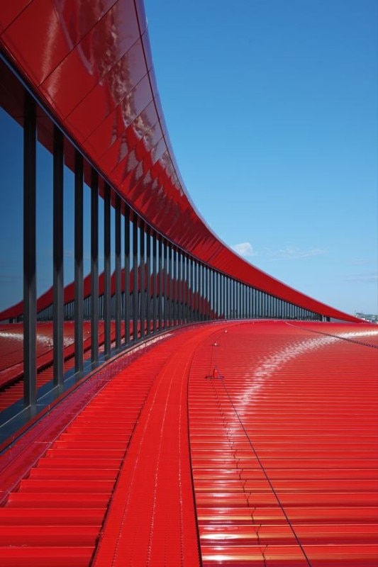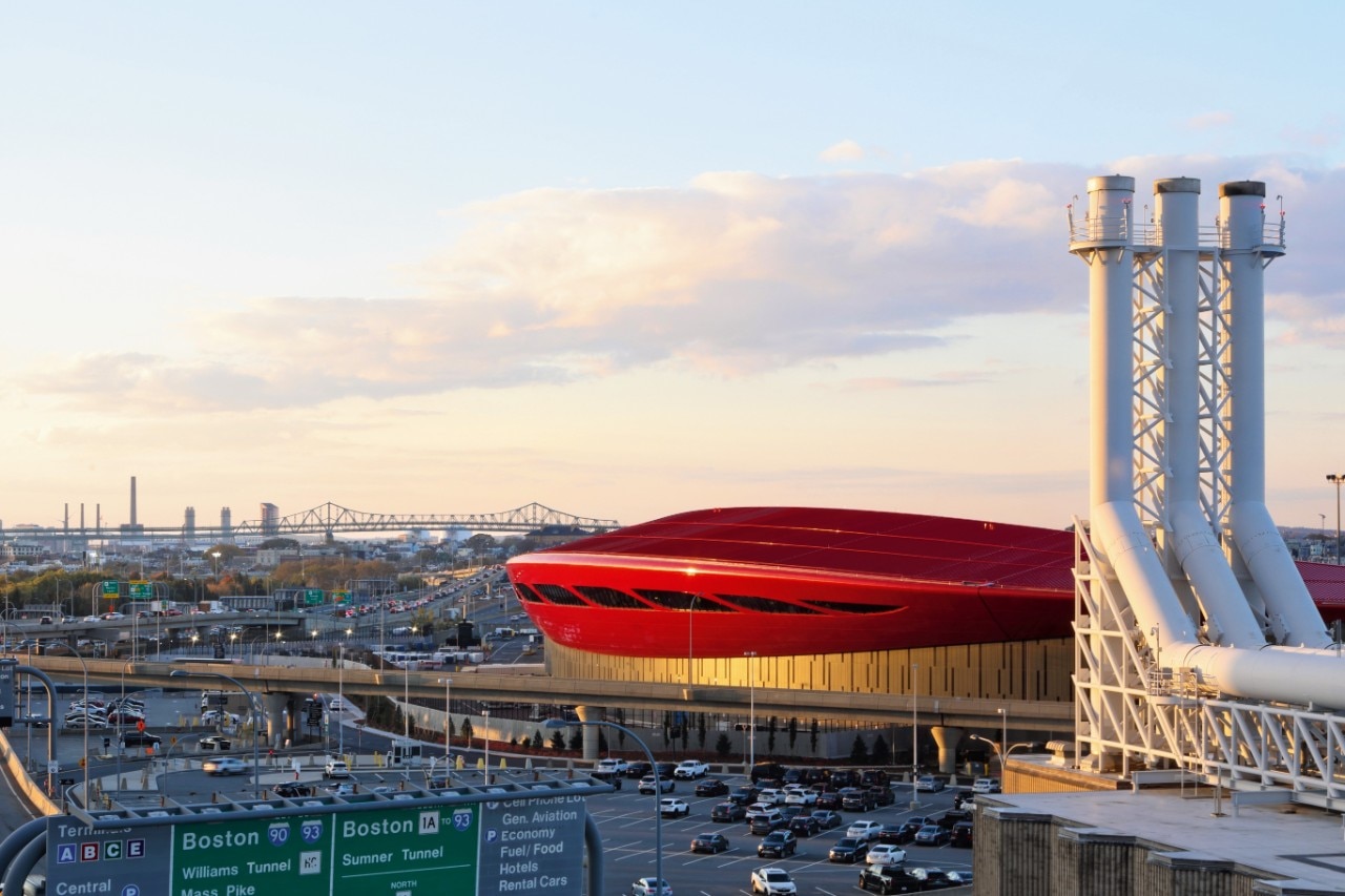 Una caratteristica peculiare del progetto è l’iconico tetto rosso del terminal. La vernice rossa a effetto prismatico, soprannominata Boston Red, utilizzata per la prima volta per un aeroporto, è stata creata appositamente per questo progetto e cambia leggermente colore a seconda della luce. La forma del tetto, che degrada dolcemente sulla facciata sud dell’edificio, offre una vista panoramica sullo skyline del centro città. I lati nord e ovest del terminal forniscono invece una vista sull’airside e sul lungomare di East Boston. Nell’elegante grande hall interna i passeggeri possono rilassarsi, lavorare o fare acquisti prima o dopo il viaggio.
