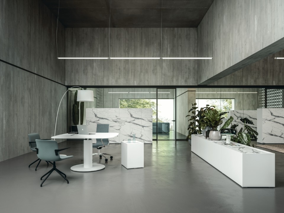 È successo che in fase di sviluppo ci siamo posti una domanda: ha veramente senso produrre un tavolo direzionale? Oggi più che mai le figure manageriali sono sempre più in movimento, tra videocall e presentazioni realizzate dalle sale di attesa degli aeroporti. Quando il manager è in ufficio dedica il suo tempo agli incontri con i colleghi, cercando di stimolare i rapporti umani. Meet Up è nata a partire da queste riflessioni.