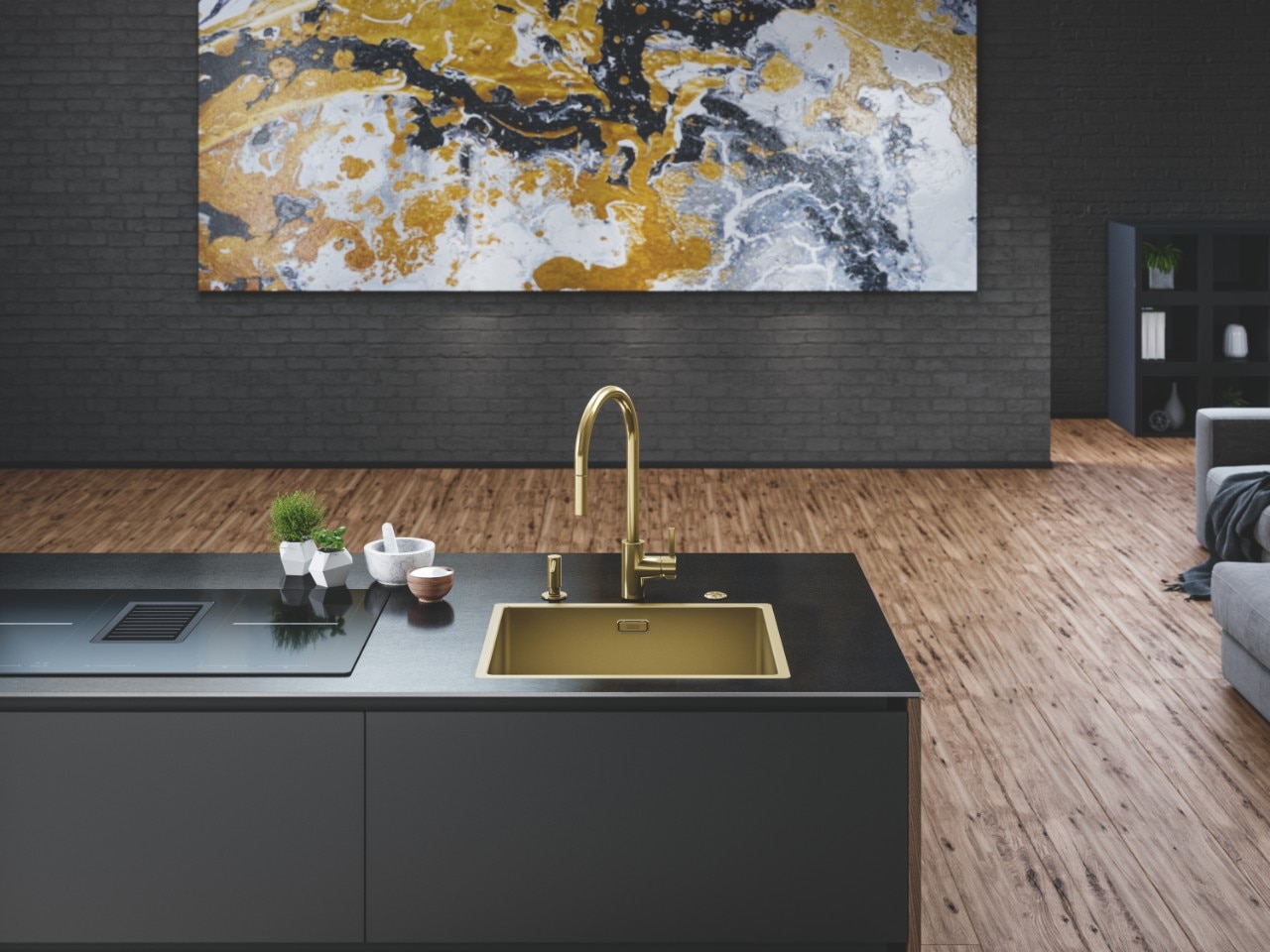 “Mythos Masterpiece”, come suggerisce il nome, è una linea di fascia alta che comprende vasche, miscelatori e accessori per la cucina. Il look degli elementi è moderno e punta sulle tonalità metalliche: Antracite, Copper brillante e Gold luminoso; ogni elemento può essere coordinato oppure, per spezzare, è possibile mixare le diverse opzioni cromatiche disponibili.