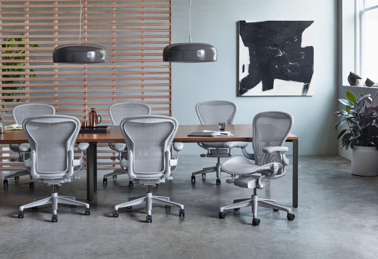 Un esempio concreto è l’aggiornamento della sedia per ufficio Aeron, di Herman Miller uno dei brand fondatori di MillerKnoll. In ottica di un minor impatto ambientale: progettata a quattro mani dai designer Bill Stumpf e Don Chadwick quasi 30 anni per Herman Miller, è ancora oggi un punto di riferimento per il mondo delle sedute ergonomiche. Si tratta di uno dei best seller dell’azienda, insignita con premi come il Good Design Award (GDA) dal Chicago Athenaeum Museum of Architecture and Design, il premio FIRA (Furniture Industry Research Association) e il premio IDSA Designs of the Decade, oltre che essere parte della collezione permanente del MoMA.