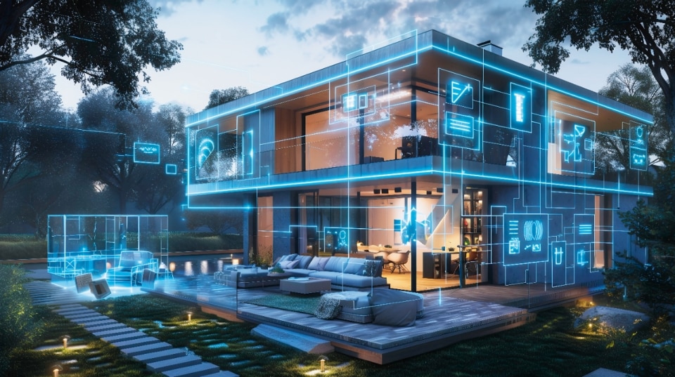 Immagine di apertura: una visualizzazione astratta di tutti i possibili punti di connessione di una smart home. Da Adobe Stock