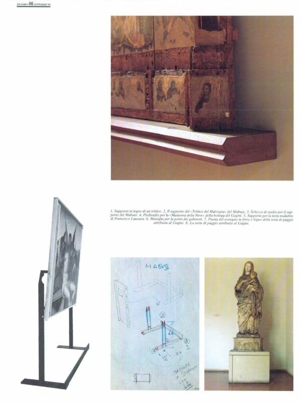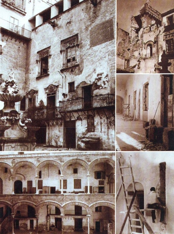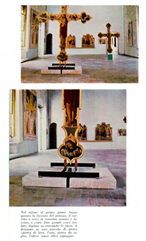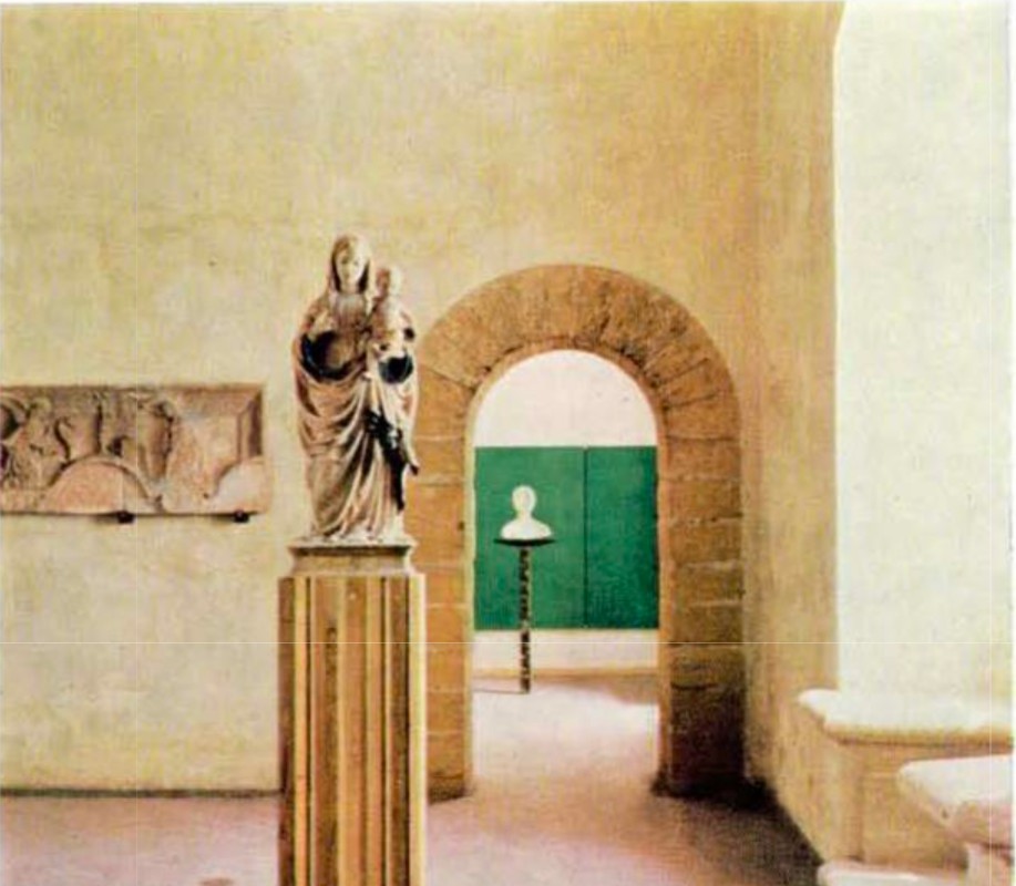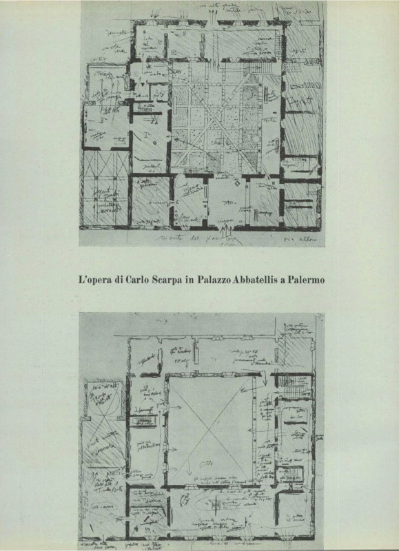 Nel 1953, [Carlo Scarpa] giunge a Palermo, preceduto dalla fama che gli aveva procurato l’anno precedente il raffinato allestimento della mostra di Antonello a Messina. Scarpa, novello maestro “bizantino”, resta inebriato dagli effluvi degli aromi e delle spezie che rendono greve e densa di sapori l’atmosfera, dallo schiamazzo aguzzo dei bambini e delle musicali cantilene cadenzate, dall’orgia del sole e dei colori resi intensi dalla luce violentissima del Mediterraneo. Chiamato ad allestire le sale della nuova Galleria della Sicilia a Palazzo Abatellis Scarpa ritrova, tra i possenti conci a squadro, gli archetipi ideali della volumetria materica, del suo gusto sensitivo per la forma e la geometrizzazione; ritrova lo spazio favoloso del suo immaginario personale, ricostruisce la malia dell’affabulazione che quei luoghi gli rammemorano e sull’impressum inventa il suo itinerario dialettico. […]