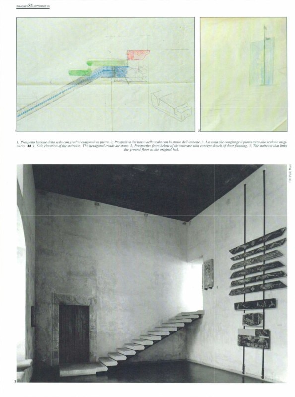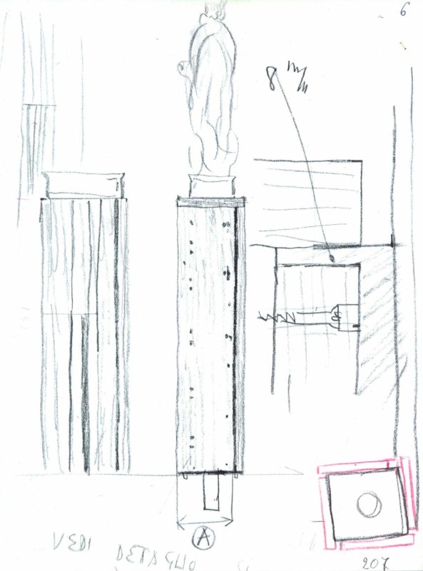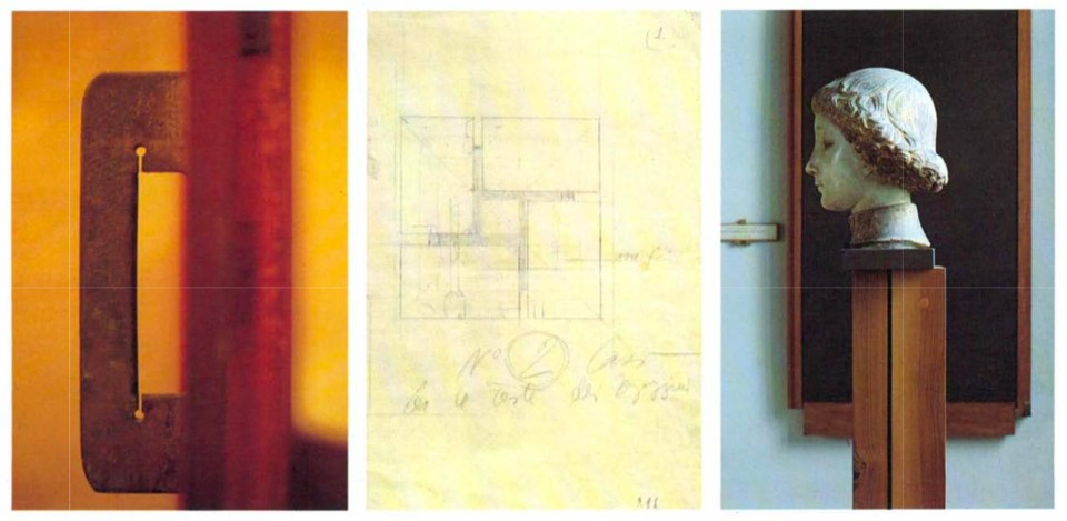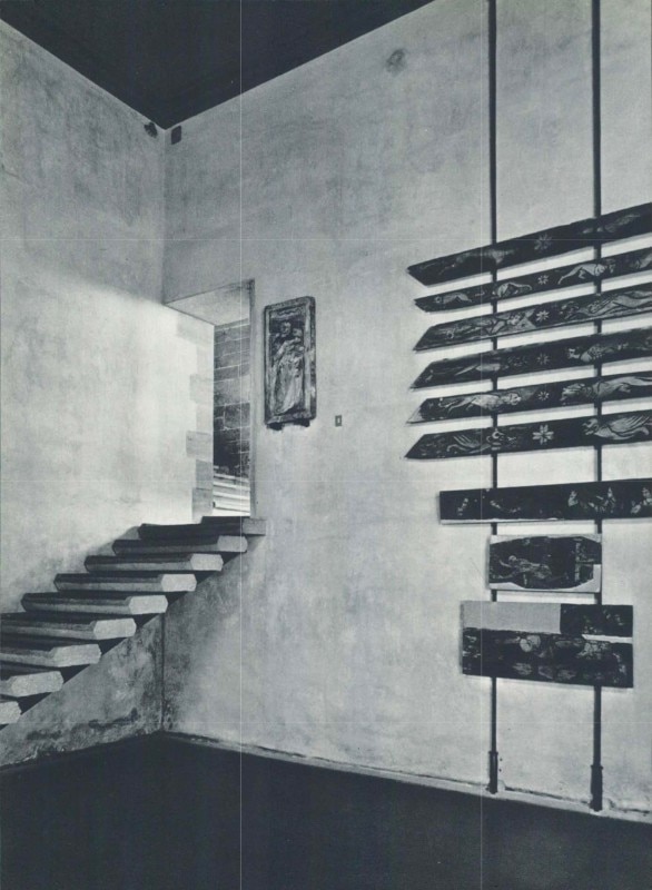 Sul microscopico dettaglio si addensano le attenzioni tattili dell’esperto architetto-artigiano, nelle gocce delle saldature dei ferri giustapposti, fresate e sagomate con un semplice raccordo, nelle viti che tengono serrate le doghe dei carabottini. La materia si piega al disegno non per il diletto di un semplice ornamento, bensì quale ri-presentazione di una legge necessaria. In un anacronistico confronto con il tempo, Scarpa si dibatte tra la sapiente manualità tecnica e l’elucubrazione astratta intorno alla forma, disponendo ciò che è perfettamente in suo possesso secondo le icone di una idea pre-vista.