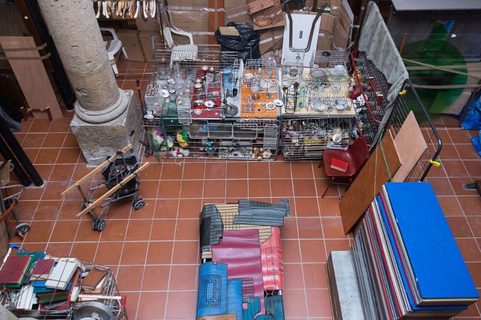 Restano poi tre progetti più difficilmente riconducibili al concetto che sta alla base di questa sezione di Manifesta 12, dal titolo Garden of Flows e che tratta di tossicità, di vita delle piante e di cultura del giardinaggio in relazione alle risorse del pianeta e al bene comune. Si tratta delle opere di: Khalil Rabah dal titolo Relocation, Among Other Things, un accumulo di oggetti diversi raggruppati per tipologia dentro al Padiglione Tineo, che si può forse interpretare come una metafora oggettuale dell’Orto Botanico stesso; l’enigmatica installazione di Lungiswa Gqunta, Lituation, che vorrebbe proporre una lettura del giardino come luogo di oppressione, lavoro, memoria e rituali e come punto di partenza per il riscatto delle popolazioni africane; e le belle opere figurative di Toyin Ojih Odutola della serie Scenes of Exchange, che invece rimandano al tema degli scambi culturali e commerciali.