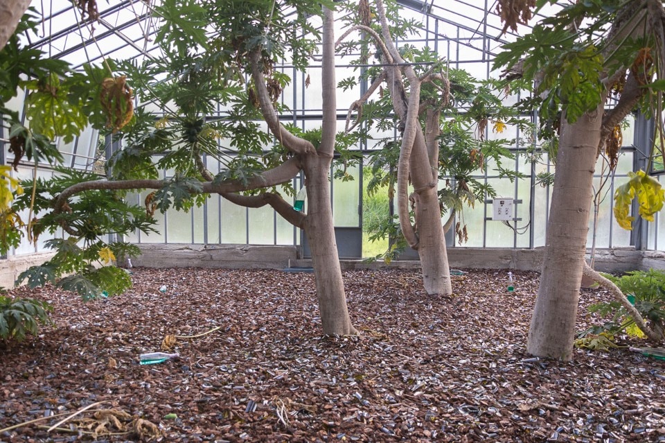 Michael Wang invece con The Drowned World, dimostra cosa accade nei luoghi contaminati dall’industrializzazione, i cui processi alterano la composizione chimica degli ambienti (come nelle vasche di scarti) dando così vita ad esempio a microbi dai colori più disparati. L’artista inoltre costruisce una scala metallica che permette allo spettatore di arrampicarsi e osservare oltre il muro dell’Orto Botanico per vedere dal vivo come tale contaminazione sia in atto anche qui, dove si trova un gasometro abbandonato e inaccessibile. Sue anche le foto nella galleria dietro alla serra.