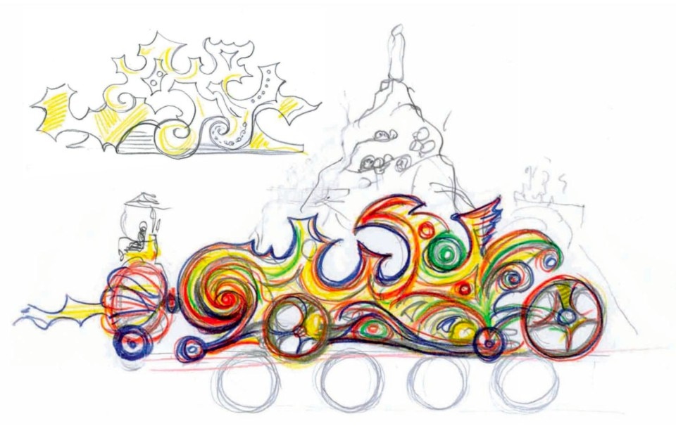 Il secondo suggerimento mi raggiunse quando mi trovavo al porto. Palermo è tutta un porto, come dice il suo etimo; nel mio carro doveva pur esserci un vascello, sostenuto magari da flutti ebbri e guidato da un tonno veloce. Carretto e vascello, terra e mare, Sicilia appunto, da combinare insieme grazie al curvilineo barocco del gesuita Andrea Pozzo: ecco l’idea portante del progetto. […] Il progetto per varie ragioni rimase sulla carta, ma il 3 ottobre 2010 S.S. Benedetto XVI nella sua visita pastorale a Palermo ricevette dal Sindaco il modello del carro in scala, come dono della città.