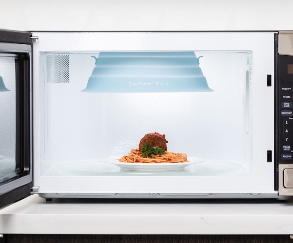 Ideale per coloro che utilizzano il forno a microonde per cuocere o riscaldare le pietanze, Duo Cover è una copertura in silicone che va riposta sui cibi per trattenere gli schizzi e mantenere il forno sempre pulito. Ci permette di prelevare i piatti caldi evitando spiacevoli scottature e dispone di una vaschetta superiore in cui aggiungere dell’acqua per cuocere i cibi a vapore semplicemente ruotando la manopola MoistureLock. Lavabile e richiudibile, dispone di un magnete per essere fissato sulla parte superiore interna del microonde quando non viene utilizzata. È disponibile a 27 euro.