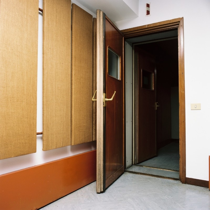 Da questo punto di vista, l’auditorio A, dedicato alla prosa, è uno degli ambienti meglio conservati. In altri studi, le pareti e i soffitti originali sono stati salvati ma nascosti e mascherati da una “scatola nella scatola”, aggiornata nelle sue estetiche e nelle sue dotazioni tecnologiche. Qui, invece, il tempo sembra essersi virtualmente fermato a un’epoca in cui i pannelli fonoassorbenti a parete potevano essere orientati a mano – sono ancora perfettamente funzionanti – e in cui una vera scala metà in legno e metà in marmo era lo strumento più efficace per riprodurre il suono di passi compiuti su superfici diverse.